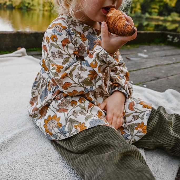 Le tissu aux couleurs automnales et pleines de luminosité est également dessiné et imprimé en France. De quoi remplir le dressing de votre pépette avec un vêtement original et éco-responsable.